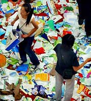 Leaflets cover floor at a Nanjing medical expo (newsphoto) Updated: 2005-08-26 07:44