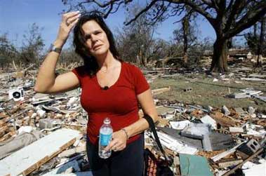 in Biloxi, Miss., as she surveys damage to what remains of the Quietwater Beach