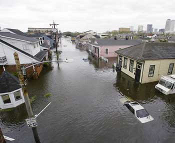 water after Hurricane Katrina hit August 29, 2005. Downtown is seen in the