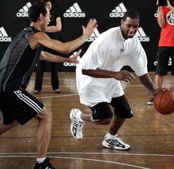 Anastasia Myskina of Russia serves to Tamarine Tanasugarn of Thailand during their match at the U.S. Open tennis tournament in Flushing Meadows, New York, August 30, 2005. Myskina defeated Tanasugarn 6-3 6-1. [Reuters]