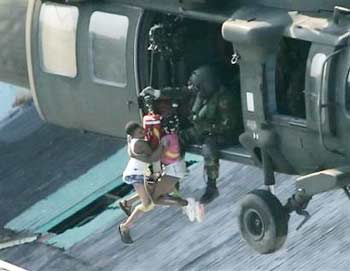 helicopter from the floodwaters of Hurricane Katrina Wednesday, Aug. 31,