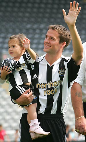 | | | Michael Owen with daughter walks on pitch of St James' Park | | |  | | | Iverson's daughter and Kidd's son | | |  | | | Owen displays his jersey of New Castle | | |