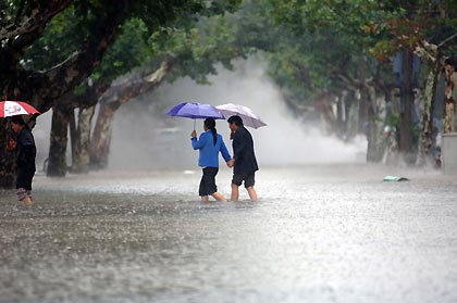 Residents ride in the back of a truck through floodwaters from Hurricane Katrina in St. Bernard Parish near New Orleans, Louisiana September 3, 2005. U.S. President George W. Bush ordered more troops to secure New Orleans on Saturday as rescuers evacuated thousands of desperate refugees and closed two huge shelters plagued by murder, rape and chaos. [Reuters]