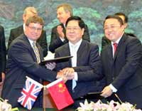 The signing ceremony was attended by British Prime Minister Tony Blair,