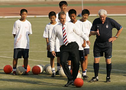 Blair tries football skills among Chinese kids Updated: 2005-09-07 07:34