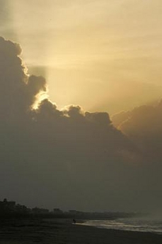People walk along the beach as the sun rises at Atlantic Beach, N.C., Tuesday, Sept. 13, 2005. The area is preparing for the arrival of tropical storm Ophelia. [AP]