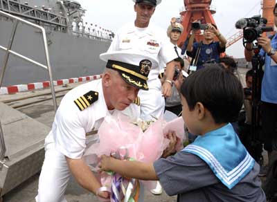 U.S. President George W. Bush (R) greets China's President Hu Jintao (L) in New York September 13, 2005. Hu is in New York for the United Nations General Assembly meeting. The U.N. is celebrating its 60th anniversary during this session. [Reuters]