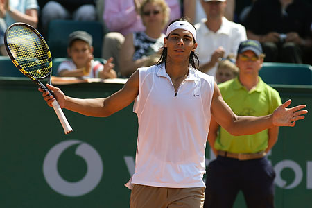 With his heavily top-spin, consistent groundstrokes and a die-for-it attitude, the talented Spaniard, who came back from one set down to beat second-seeded Guillermo Coria of Argentina 5-7, 6-1, 6-2 here on Sunday, proved himself here with a quality to be the champion at any tournament on any surface with wonderful fitness and court coverage. "I guess I can play well on hardcourt. I reached final in Miami, I won in Montreal, but I played badly in Cincinnatti as well as at the U.S. Open," said Nadal, whose victory at the Montreal Masters last August had proved his hardcourt prowess. "I think if I play bad, I can lose on clay, and if I play well I can win on hardcourt. " Regarded the most promising youngster to world tennis, Nadal's position on the ATP ranking board has rised from 51st to 2nd in six months, and after claiming his ever-first grand slam title of career at Roland Garros last June, the teenager's eyes have been set on a further self-approval. "I'm getting a little bit tired after the match week, but winning the China Open makes me quite happy and more confident," said the Spanish teenager. Holding a better win-lose record against Argentines, Nadal said there's no know-how but the Argentines mostly play the same style with him. "It's good for me that they play the same with me, top-spin and clay-favorite. They are good players and I can lose any match against Argentines. For today's final victory, well, I just win a match," he said. The 19-year-old even got praised by his opponent. "Nadal is a great player, this year could become his year and he's so confident like the fortune always stands by him," said Coria at a post-match press conference after losing the China Open title to the Spaniard. "I'm not upset for losing to him, since he played wonderful tennis today and I'm glad to commit a highlighted defeat," he added.
