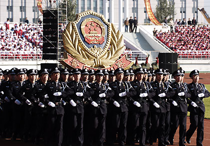 Policemen move in a square matrix during a parade in Changchun, capital of northeast China's Jilin province, September 22, 2005. Some ten thousand policemen took part in the parade which is the largest in scale of its kind in the capital since 1949. [newsphoto]