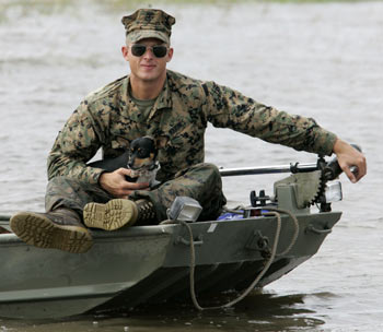 Marine Corps rescues a dog which he saved from a home that was flooded in