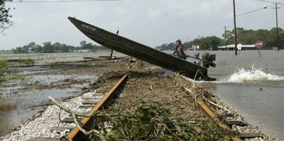 the storm surge following Hurricane Rita in Delcambre, Louisiana September