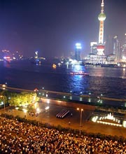 Citizens of Shanghai crowd in the waterfronts of the Huangpu River on eve of the National Day on September 30, 2005. China celebrate its 56th anniversary of the founding of the People's Republic of China on October 1, 2005. [newsphoto]