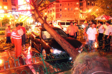 Following on from the deaths of three people in Fujian Province over the past two days as a result of the storm, the landslide happened in Minhou County of Fujian's provincial capital, Fuzhou, China Central Television reported. Torrential rains brought by the typhoon caused the hillside to give way above the civilian buildings where the students were staying, sweeping them away. President Hu Jintao yesterday made a phone call and asked for every effort to be made to find the missing. Typhoon Longwang, which means dragon king in Chinese, raged across Taiwan on the weekend before moving on to Fujian. About 537,000 people had been evacuated to safety, officials said, and 2.46 million people were affected. Although downgraded to a tropical depression yesterday, Longwang had already damaged 60,000 hectares of crops, with 12,500 "completely damaged," Xinhua reported. Economic damage was estimated at 1.2 billion yuan (US$150 million). Officials and residents of Fuzhou are cleaning up today as Longwang brought rain described as being on a scale of "once-a-century." One resident, surnamed Hu, said he was confined to his 16th-floor apartment on Hualin Road, with no water or electricity. "A nearby river flooded the road, and the water rose to a depth of 2 metres," he said. "The underground parking lot of my building is completely submerged." Cars whose engines were stopped by water could be seen everywhere. Some drivers were forced to stay in their cars on Sunday night. Downpours from the typhoon, the 19th to hit China this year, began at noon on Sunday in Fuzhou and lasted for 14 hours, dumping 111 millimetres, according to the provincial meteorological bureau. The rain paralyzed Fuzhou's transport system. Pools of water on the main streets were about 70 centimetres deep. The city imposed traffic control yesterday on more than a dozen main streets in the downtown area. The meteorological bureau reported that Longwang first struck Weitou town, Jinjiang city, with winds of up to 120 kilometres per hour at its centre. The previous typhoons to hit China's coastal areas this year caused 188 deaths and losses totalling 73.8 billion yuan (US$9 billion), according to official figures. 3 killed in Shaanxi flooding In Shaanxi Province, heavy rains since September 24 caused flooding and landslides killing three and injuring one. In Xixiang County, two students were swept away by floods. By Sunday, the floods had toppled 890 houses and caused 660 million yuan (US$80.5 million) in economic losses, provincial officials said. "About 17,000 people had to leave their homes, which were threatened by heavy rains, and more than 2,240 hectares of farmland were destroyed by flooding," said Tan Cewu, director of the Shaanxi Provincial Water Conservation Department and head of the province's anti-flood headquarters.
