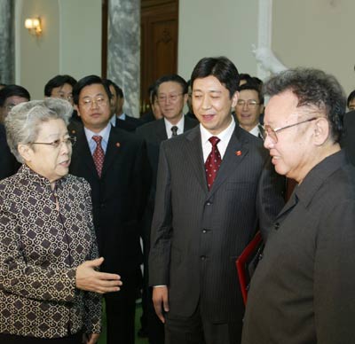 Kim Jong Il (front right), meets with visiting Chinese Vice Premier Wu Yi