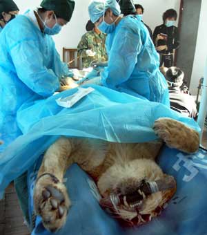 Caesarean operation on a lion