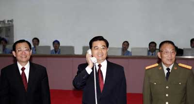 President Hu Jintao (center) talks with