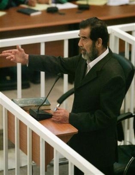 When the trial began, the 68-year-old ousted Iraqi leader — looking thin with