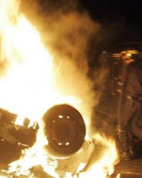 car in Paris suburb, Aulnay-sous-Bois, early Thursday, November 3, 2005.