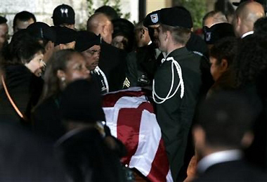 Rosa Parks flag draped casket is carried to