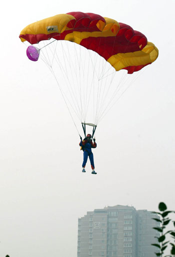 Parachuting from TV tower in Beijing (newsphoto) Updated: 2005-11-04 14:08