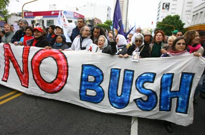 People protest over the presence of U.S. President George W. Bush at the 4th Summit of the Americas during a march through the center of Mar del Plata, Argentina, November 4, 2005. [Reuters]
