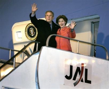 President Bush arrived in Japan aboard Air Force One on