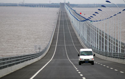 China's first sea-spanning bridge ready for traffic (newsphoto) Updated: 2005-11-18 11:48