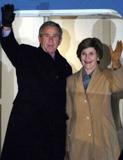 US President George W. Bush (2nd L) arrives in Beijing, China, on Nov. 19,