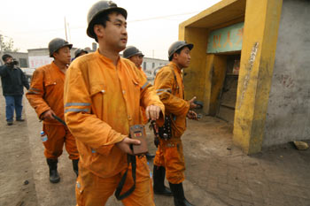 Chinese rescuers prepare to enter a flooded coal mine in Xingtai, North China's Hebei Province November 21, 2005. [newsphoto]