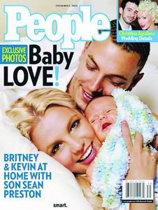 The cover shot shows the baby--that would be Sean Preston--snuggled in a