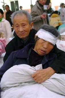 Ruichang resident who is injured in an earthquake, receives treatment in