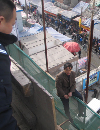 'Give me money, or I will jump off' (newsphoto) Updated: 2005-11-30 07:00