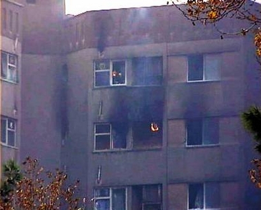 from a building in Tehran following a plane crash, December 6, 2005. An