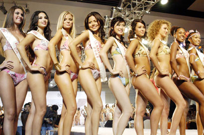 Miss World contestants parade in swimsuits in Sanya, Hainan December 6, 2005.Miss Russia, Miss Moldova and Miss Mexico won the swimsuit contest. The finals of the 55th Miss World Contest will be held on December 10. [newsphoto]
