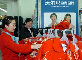 clothes at the new Wal-Mart store in Xuanwu District in Beijing yesterday.