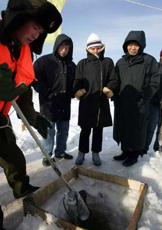 Researchers collect water samples from Songhua River (newsphoto) Updated: 2005-12-09 09:55