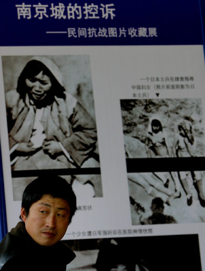 A man walks past an exhibition depicting Japanese atrocities in China during World War II in Nanjing, East China's Jiangsu Province December 11, 2005. On December 13, 1937, Nanjing fell to the hands of invading Japanese troops who launched a ruthless masscre, known as Nanjing Massacre, in which more than 300,000 Chinese were killed. [newsphoto]