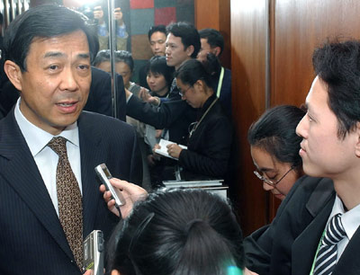 Bo Xilai speaks to reporters on the sidelines of the sixth WTO ministerial