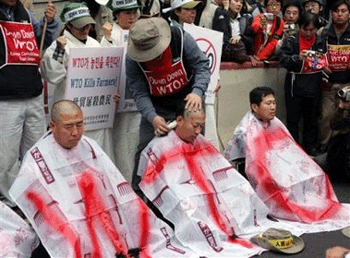 Hong Kong hoping to block a WTO agreement åK½ï¿½ shaved their heads, threw eggs and