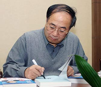 the School of Journalism in Renmin University, signs his name on his