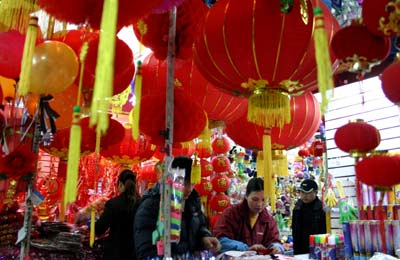 and Spring Festival at a market in Nanjing, east China's Jiangsu province,