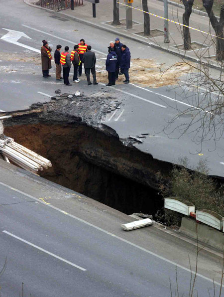 caused an eastern section of the city's Third Ring Road to cave in, creating a