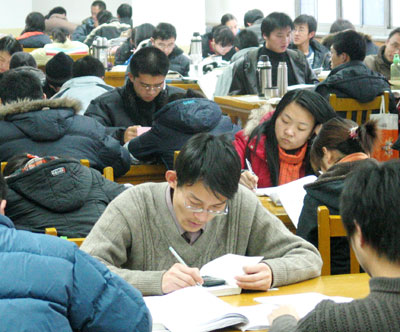 program examinations crowd into a library in Shanxi University in