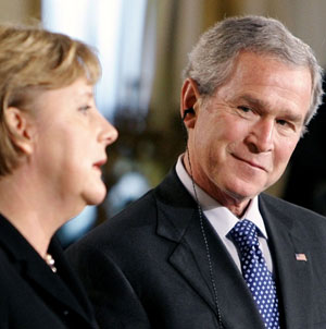 Bush and Merkel both had tough warnings for Iran over its nuclear