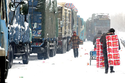 Blizzards bring transport chaos in Henan (newsphoto) Updated: 2006-01-20 15:57