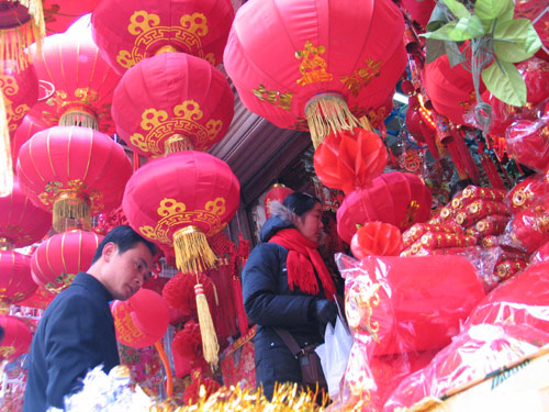 Citizens shop for decorations for the Spring Festival in Hefei, East China's Anhui Province January 23, 2006. [newsphoto]