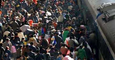 Chinese passengers wait to board a train in Nanjing January 23, 2006.
