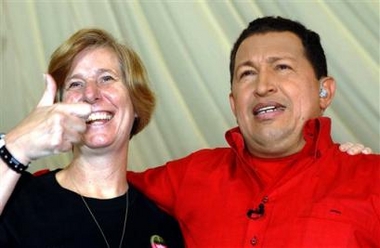 Hugo Chavez, his arm around Sheehan's shoulders, told a group of activists