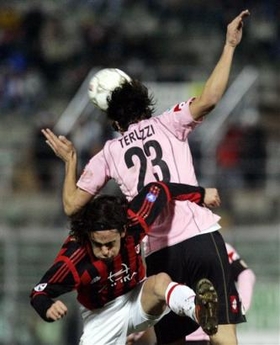 Filippo Inzaghi, left, and Palermo defender Christian Terlizzi challenge