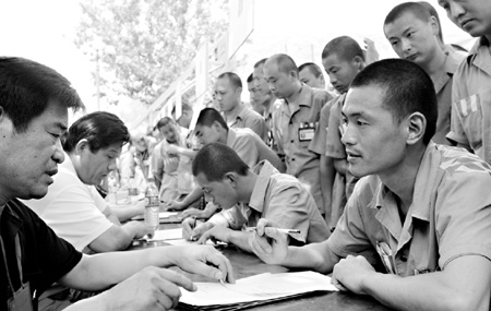 with a recruiter at a job fair in a jail in Jinan, Shandong Province. More